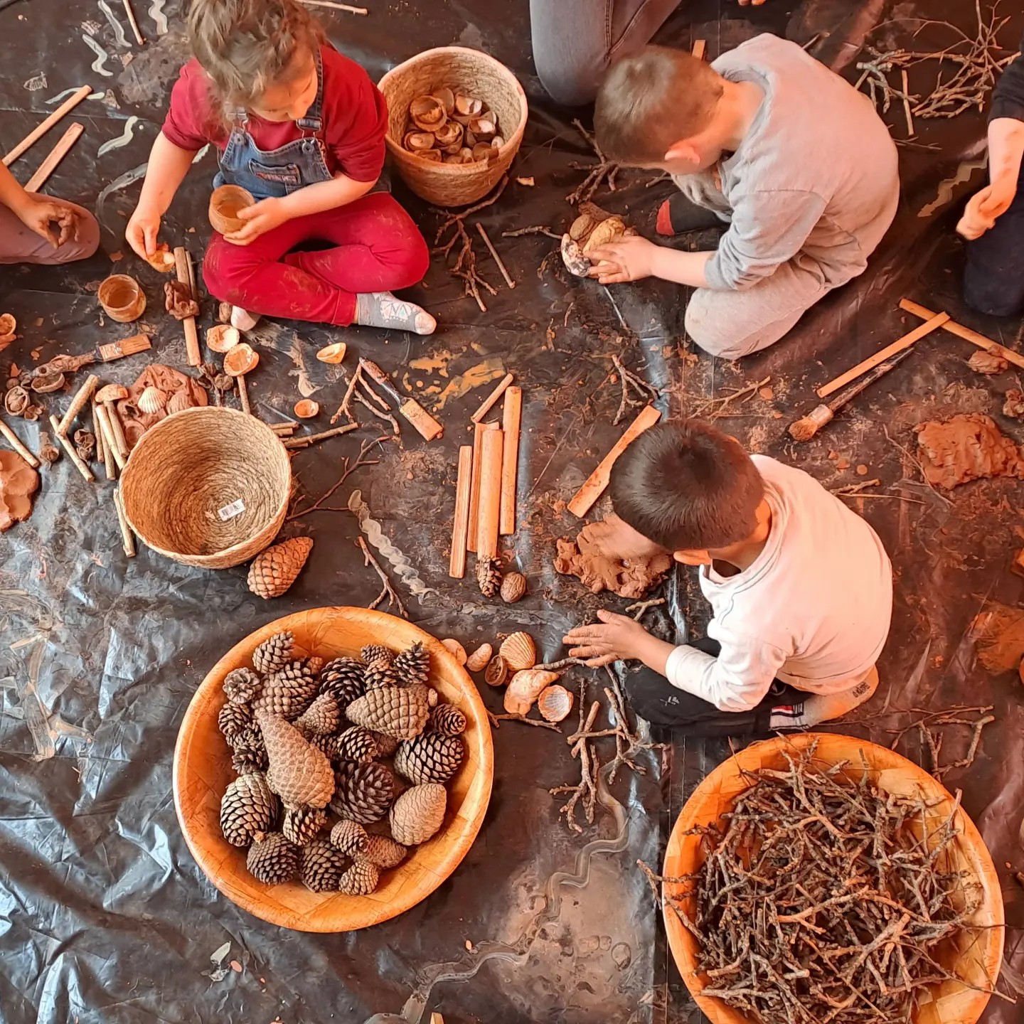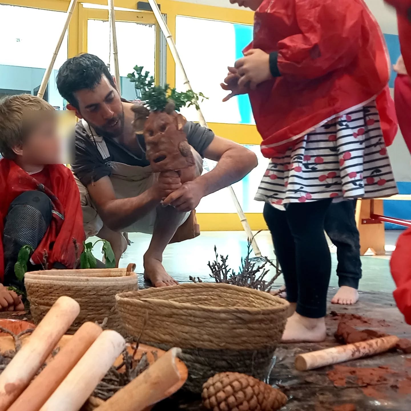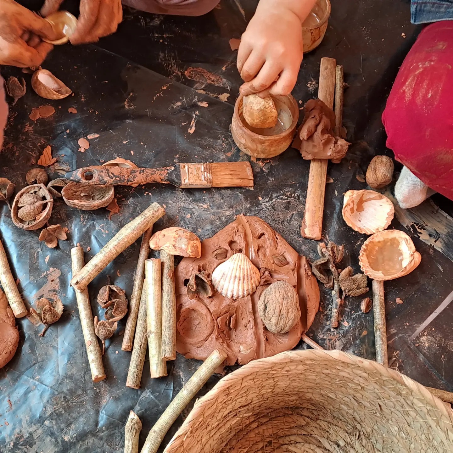 Dans cet atelier la manipulation est bien plus importante que l’objet créé. Les créations en argile redeviennent une boule de Terre en fin de séance.